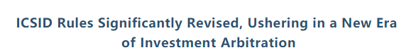 The main highlights of the revised ICSID Regulations and Rules include: (1) improved procedural efficiency. The revised ICSID Arbitration Rules clarify that all documents are to be served electronically absent exceptional circumstances and add mandatory case management conferences and specific timelines for each key procedural step. In particular, the ICSID Arbitration Rules also add new expedited arbitration procedures for parties’ discretion to apply; (2) expanded the jurisdiction scope of ICSID. The revision of the ICSID Additional Facility Rules significantly expands its jurisdiction over international investment disputes by allowing parties to agree to resort to the ICSID Additional Facility Rules for arbitration and mediation when none of the parties to the dispute is an ICSID member or a national of an ICSID member; (3) new mediation and fact-finding rules. In this amendment, ICSID has added independent ICSID Mediation Rules and Regulations and ICSID Fact-Finding Rules and Regulations, under which mediation and fact-finding procedures can be applied independently or together with arbitration procedures, providing more options for parties to seek the most favorable dispute resolution; and (4) further improved transparency of arbitration procedures. Under Article 14 of the ICSID Arbitration Rules, parties must disclose the name and address of any third party funder immediately upon receipt of funding or upon acceptance of the case to avoid potential unknown conflicts of interest.